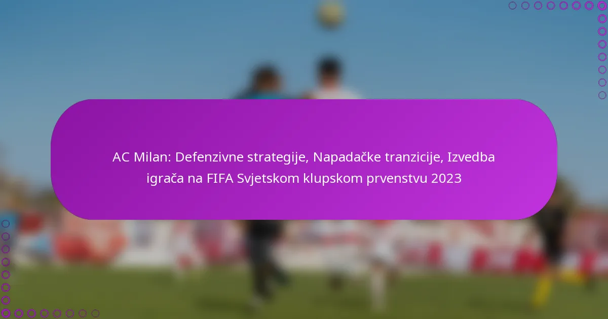 Koje su defenzivne strategije AC Milana na FIFA Svjetskom klupskom prvenstvu 2023.?