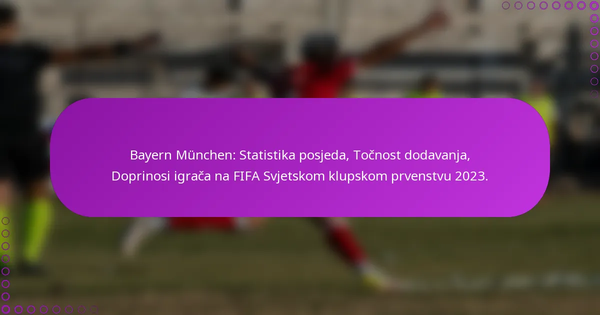 Bayern München je na FIFA Svjetskom klupskom prvenstvu 2023. pokazao izvanrednu izvedbu, istaknuvši se impresivnom statistikom posjeda i visokom točnošću dodavanja. Ovi elementi nisu samo prikazali njihovu sposobnost kontrole igre, već su također olakšali ključne doprinose igrača u postizanju golova, asistencijama i obrani, što je na kraju dovelo do njihovog uspjeha na turniru.