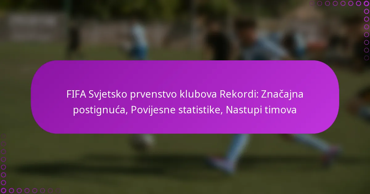 FIFA Svjetsko klupsko prvenstvo zabilježilo je izvanredna postignuća od svog osnutka, prikazujući najbolje klupske timove iz cijelog svijeta. Ključni rekordi ističu dominaciju određenih timova, istaknute igrače i neočekivane ishode koji su definirali povijest turnira.