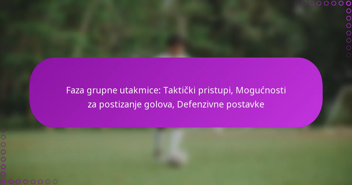 Koji su ključni taktički pristupi u utakmicama grupne faze?