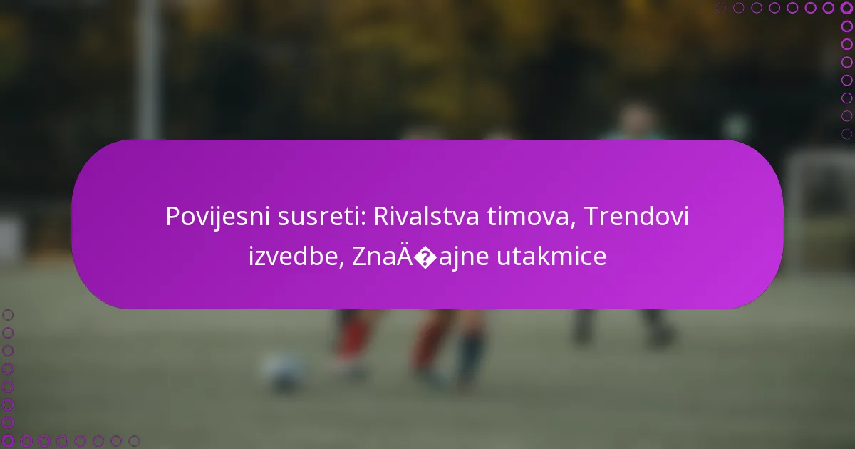 Komparativni aspekti susreta timova uključuju međusobne omjere, izvedbe igrača, strategije trenera i povijesnu značajnost. Razumijevanje ovih elemenata može pružiti uvid u dinamiku rivalstava i potencijalne ishode budućih utakmica.