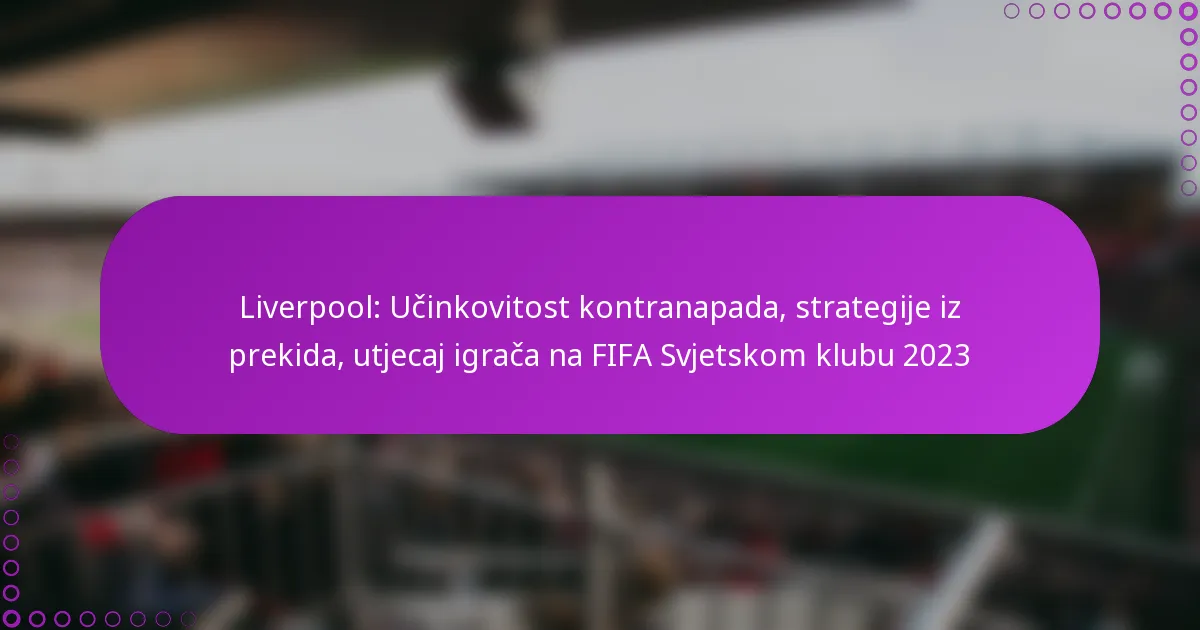 Predstava Liverpoola na FIFA Svjetskom klupskom prvenstvu 2023. ističe njihove učinkovite strategije kontre, koje se fokusiraju na brze tranzicije i iskorištavanje defenzivnih slabosti. Osim toga, njihove inovativne taktike iz prekida omogućile su im da iskoriste prilike za postizanje golova, što je značajno utjecalo na njihov ukupni uspjeh na turniru. Ključni igrači također su odigrali ključnu ulogu, doprinoseći golovima, asistencijama i defenzivnim akcijama koje oblikuju ishod utakmica.