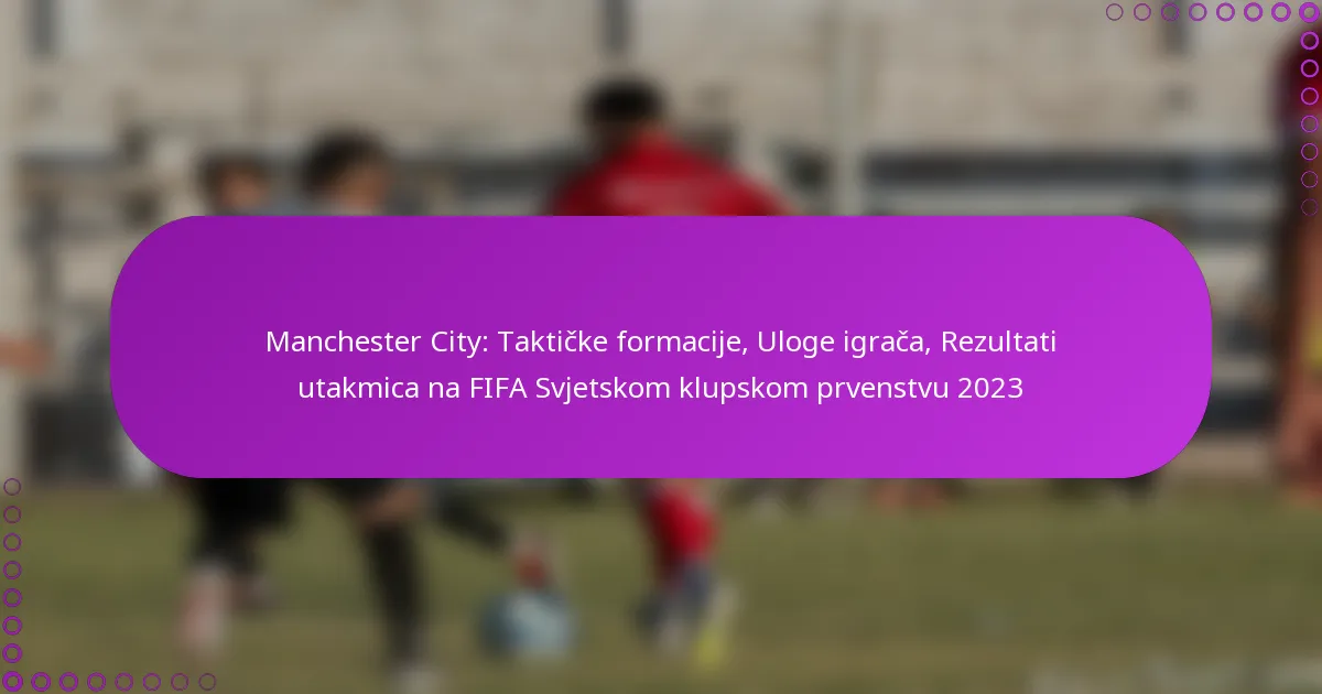 Manchester City: Taktičke formacije, Uloge igrača, Rezultati utakmica na FIFA Svjetskom klupskom prvenstvu 2023