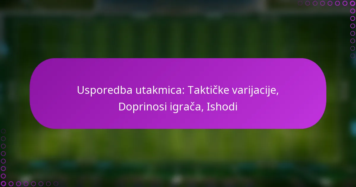 Usporedba utakmica: Taktičke varijacije, Doprinosi igrača, Ishodi
