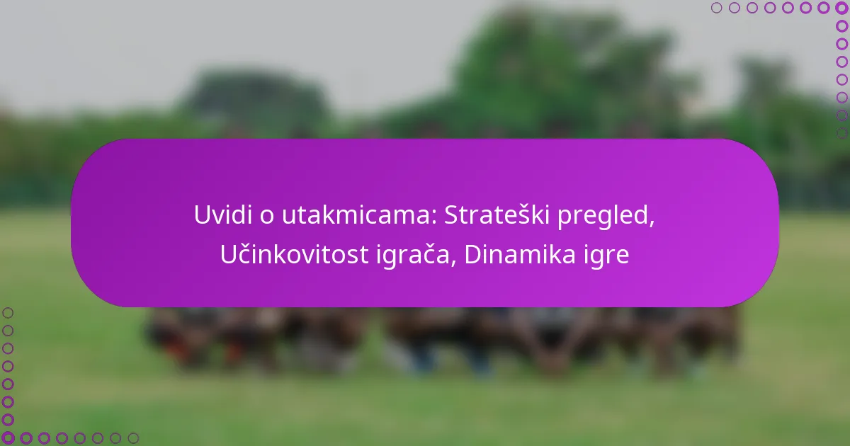 Uvidi o utakmicama: Strateški pregled, Učinkovitost igrača, Dinamika igre
