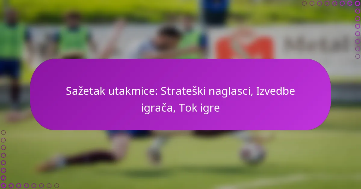 Sažetak utakmice: Strateški naglasci, Izvedbe igrača, Tok igre