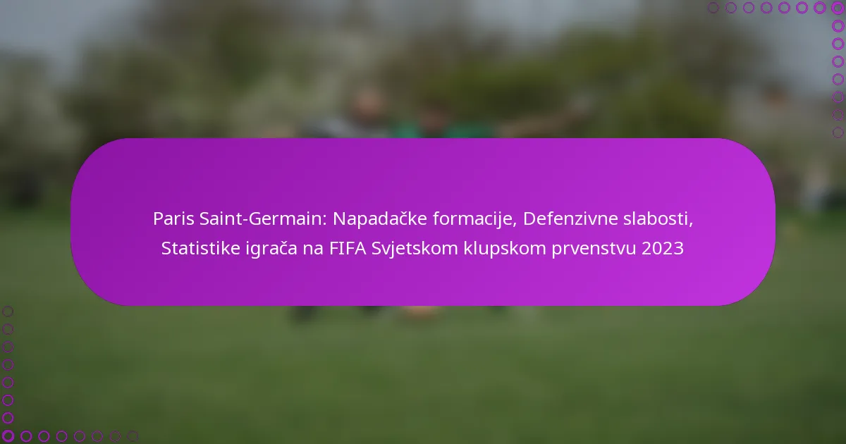 Tijekom FIFA Svjetskog klupskog prvenstva 2023., Paris Saint-Germain (PSG) je prikazao niz napadačkih formacija, posebno 4-3-3 i 3-5-2, kako bi maksimizirao svoje ofenzivne sposobnosti. Međutim, tim se suočio i s značajnim obrambenim slabostima, posebno protiv brzih kontranapada i organizacijskih propusta, koji su se pogoršali ozljedama ključnih igrača. Analiza statistike igrača iz turnira pruža vrijedne uvide u njihove napadačke snage i obrambene nedostatke, osvjetljavajući utjecaj pojedinačnih izvedbi na ukupni uspjeh tima.